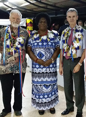 Pacific Media Centre's Professor David Robie with FALE Dean Dr Akanisi Kedrayate and the French Ambassador to Fiji Michel Djokovic at the USP journalism awards night. Image: USP |